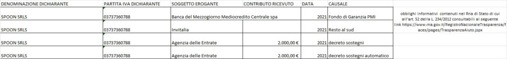 Informazioni ex art.1 della Legge 4 agosto 2017 n.124 – SPOON SRLS